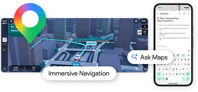 Google Maps uppdateras med en ny AI-funktion: Ask Maps. Funktionen gör det möjligt för användare att prata med kartan, ställa mer komplexa frågor och få personliga rekommendationer baserade på kartdata, recensioner och tidigare användning. Samtidigt lanseras Immersive Navigation med mer visuell och intuitiv navigering. Funktionerna rullas ut stegvis och kommer först till användare i USA och Indien.