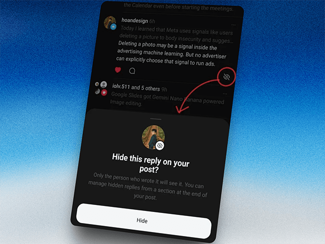 Threads låter användare dölja oönskade svar direkt från aktivitetsfliken genom att trycka på en ögonikon.