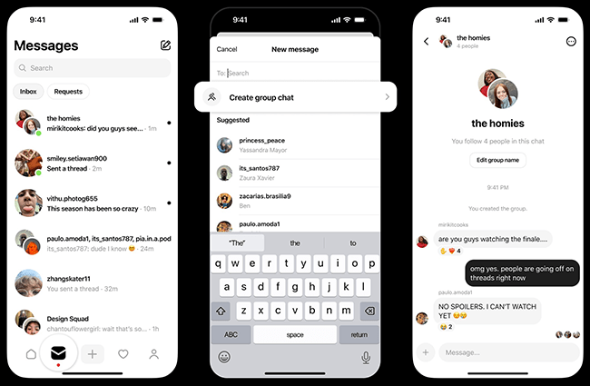 Threads rullar ut gruppchattar med upp till 50 deltagare, och låter användare i gruppchattar redigera sina egna meddelanden i upp till 15 minuter. Den Metaägda plattformen gör samtidigt direktmeddelanden tillgängliga för användare i Europa (funktionen lanserades i USA i juli).