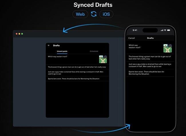 X synkroniserar nu utkast till inlägg mellan desktop och mobilappen.