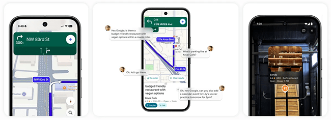 Google Maps får nu stöd för Gemini. Googles AI-assistent ska göra navigeringen mer samtalsbaserad och kan ge information om både trafik och platser du passerar längs vägen. Användare kan också söka efter platser genom att prata med kartappen, eller använda mobilkameran för att låta appen 'se sig omkring'. Funktionen rullas i första hand ut till Android-användare i USA.