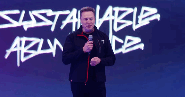 Teslas vd Elon Musk tackade aktieägarna under bolagets årsstämma i natt. GIF via Tesla