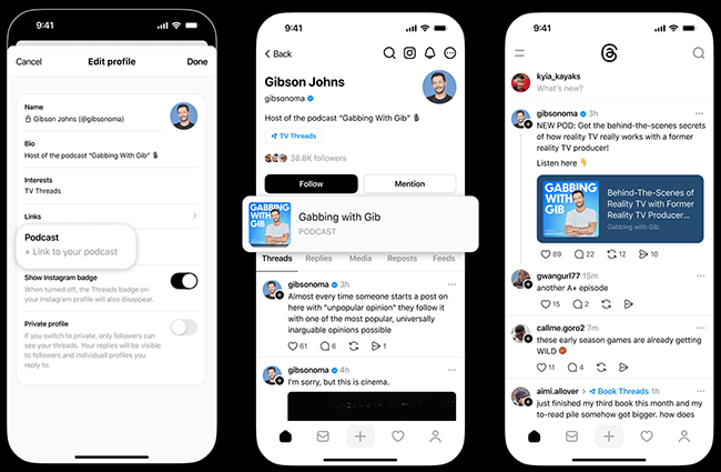 Threads testar förhandsvisningar av poddavsnitt i flödet och tydligare visning av poddlänkar på profilen.