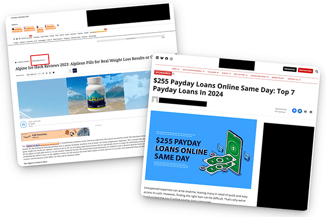 Exempel på artiklar som Google inte vill ha i sina sökresultat. Illustration via Google.