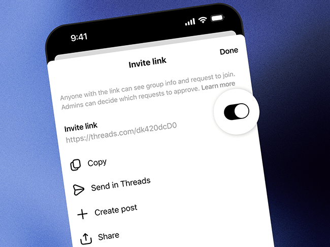 Threads rullar ut inbjudningslänkar till gruppchattar.