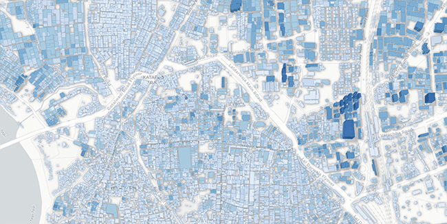 🗺️ Kartan bygger på satellitbilder för att kartlägga totalt 2,75 miljarder byggnader, och visar även byggnadernas höjd, volym och höjd över havet.