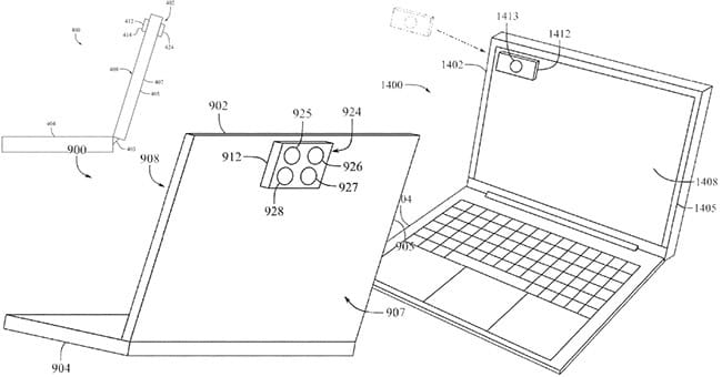 …och Apple fick samtidigt godkänt ett patent (PDF, 36 sidor) för att integrera kameror i själva skärmen och på baksidan av MacBooks.