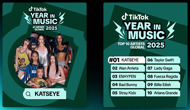 TikTok har publicerat en lista över de mest populära artisterna och låtarna på plattformen 2025.